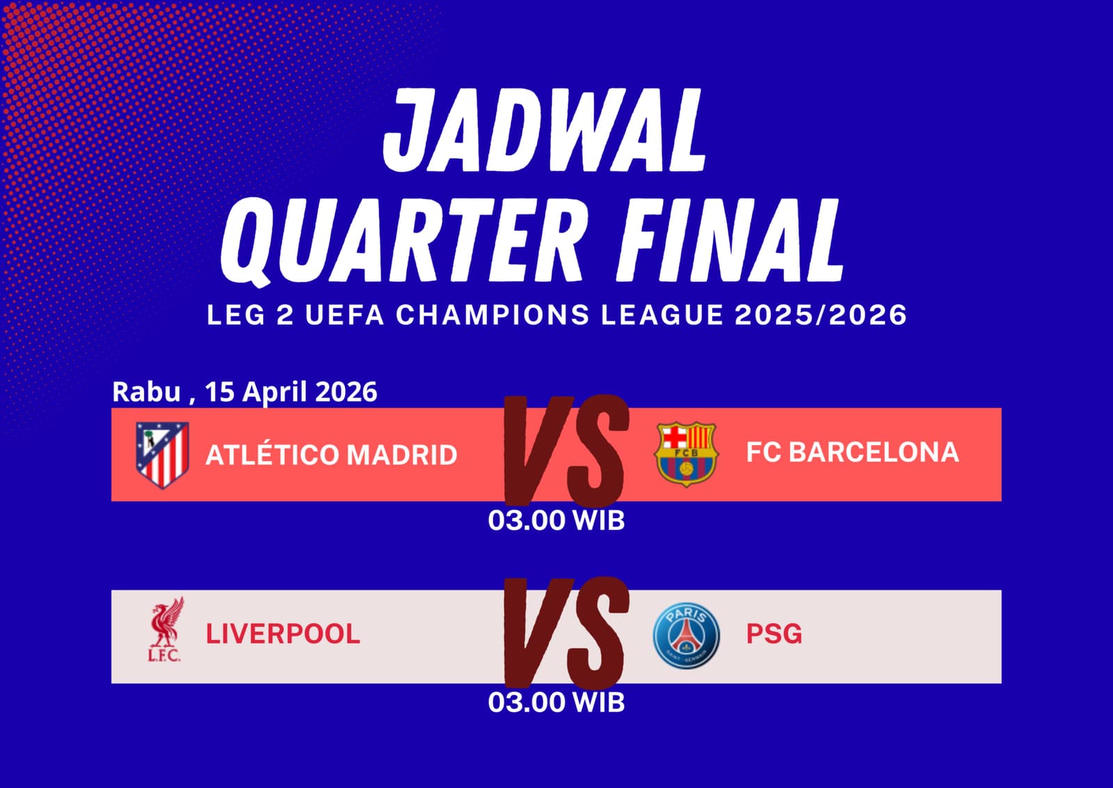 Untuk Pertandingan Leg 2 sendiri akan di mulai pada 15-16 April 2026 dan menjadi penentu tim yang akan masuk di babak Semi-Final Liga Champions musim 2025/2026.