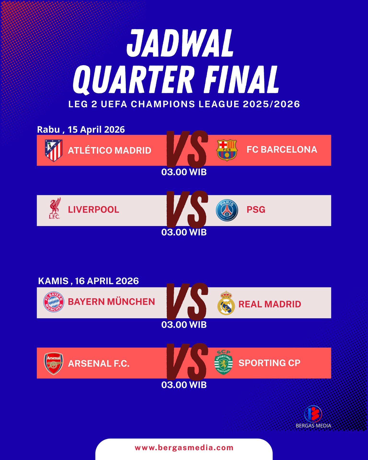 Jadwal Perempat Final Leg 2 Liga Champions 2026 - Bergas Media