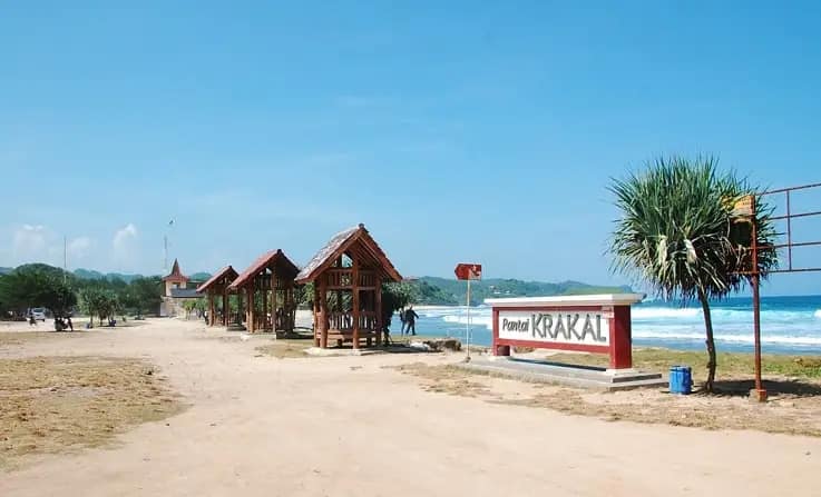 Terletak di kawasan Ngestirejo, Tanjungsari, Pantai Krakal dikenal sebagai pantai dengan bentang alam yang unik. Hamparan pasir putih yang luas berpadu dengan gugusan batu karang di sepanjang bibir pantai menciptakan panorama yang begitu memanjakan mata.