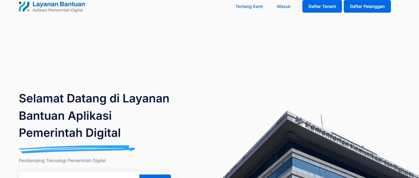 5. Kemudian anda akan diarahkan di halaman dashbord layanan Bantuan Aplikasi Pemerintah Digital.