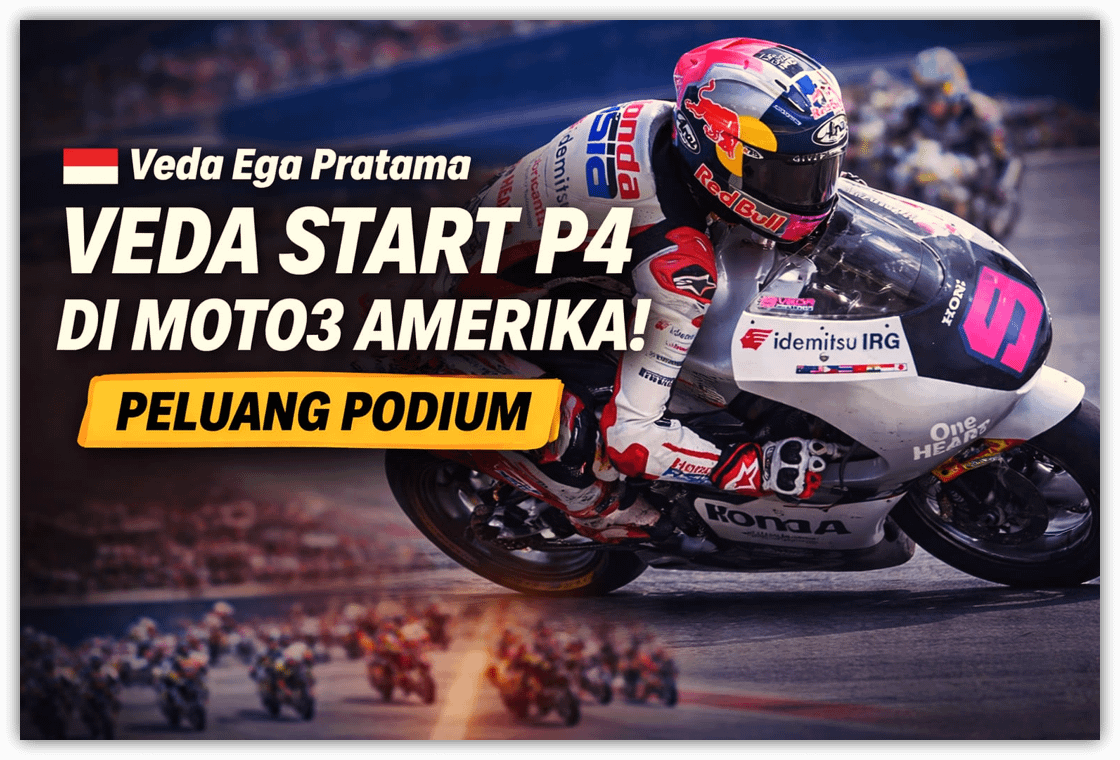 Start dari posisi keempat di Moto3 Amerika 2026 menempatkan Veda Ega Pratama dalam posisi strategis untuk bertarung di barisan depan. Ia memiliki kecepatan, momentum, dan kepercayaan diri yang sedang tumbuh.